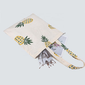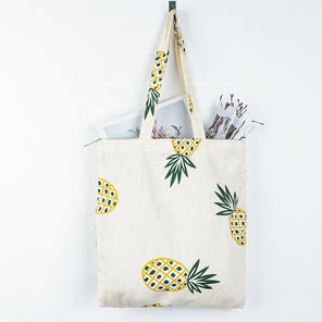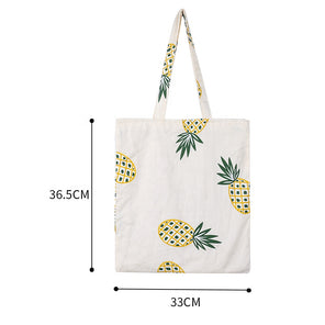 Custom Logo Printed Eco-Friendly Pineapple Pattern Reusable Grocery Shopping Canvas Cotton Tote Bags